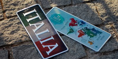 The names on the board, as well as the small Tuscan trees, are in relief.