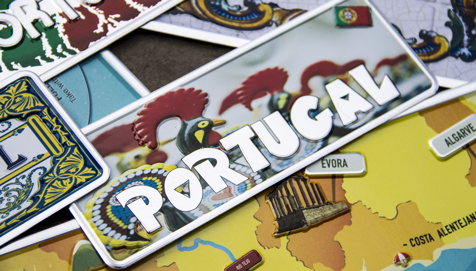 Plate with illustration of famous Barcelos Roosters. The name “Portugal”, in natural aluminium tone and the National Flag are presented in high relief.