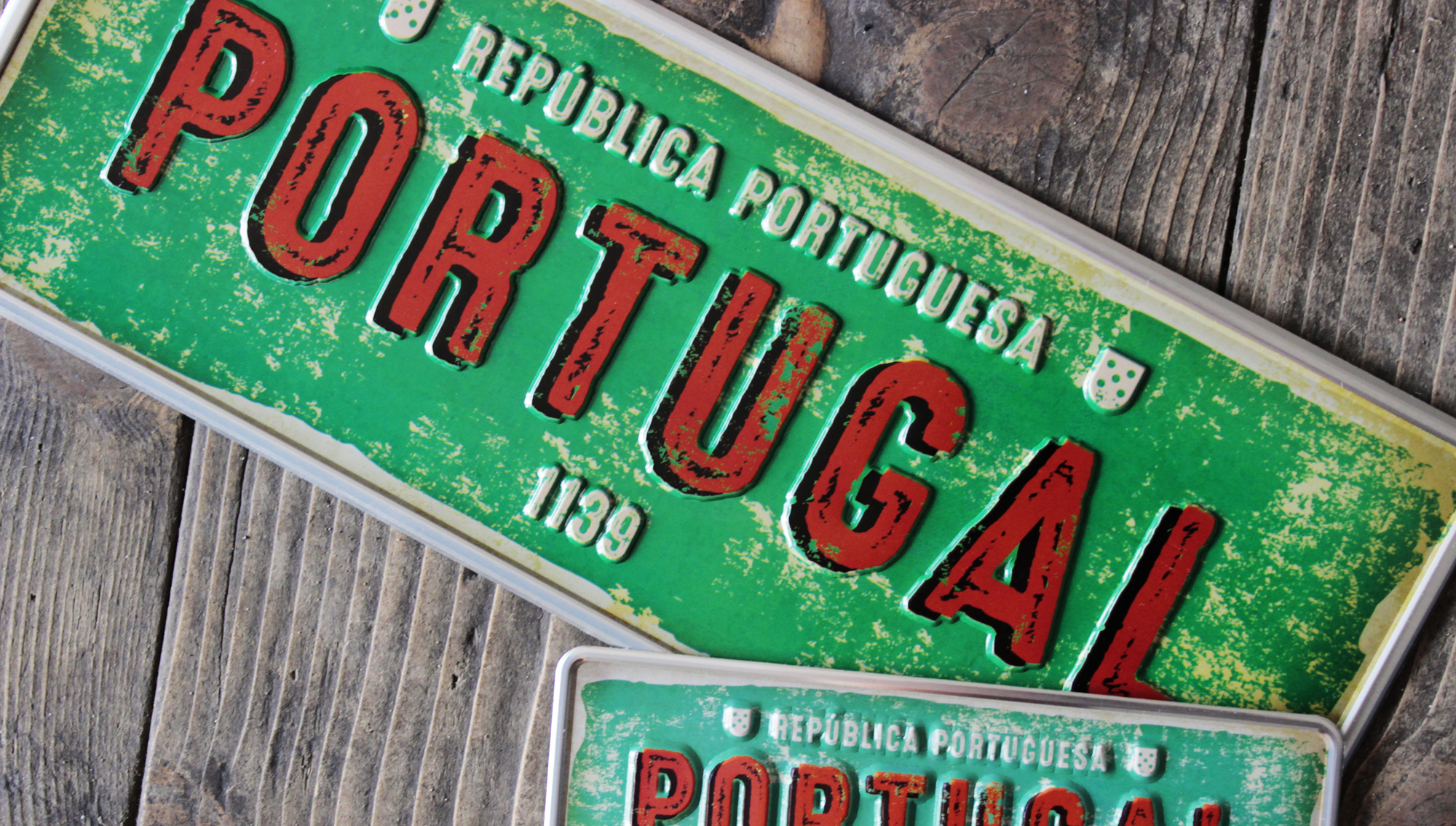 On this plate, of vintage colours, stands out the year of the “birth” of Portugal, 1139, after a thunderous victory at the Ourique’s battle, D. Afonso Henriques is acclaimed as soberane King of the Portugal Kingdom. Kingdom, wich centuries later, originates the present Portuguese Republic, also seen on the plate Portugal 1139.