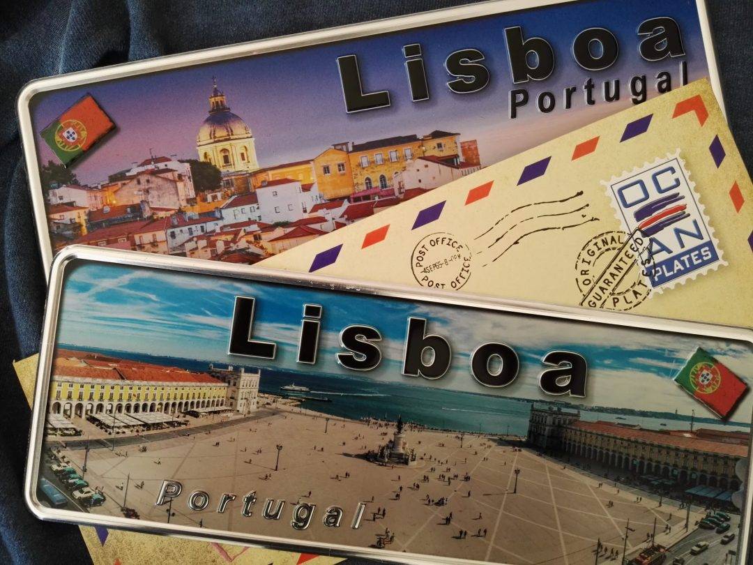 Plate with illustration of the famous Comércio Square in Lisbon . The name of Lisbon stands out in black relief. Also in relief, ‘Portugal’ presents the tone of natural alumium. The Plate of Comércio Square also highlights in high relief the National Flag of Portugal.