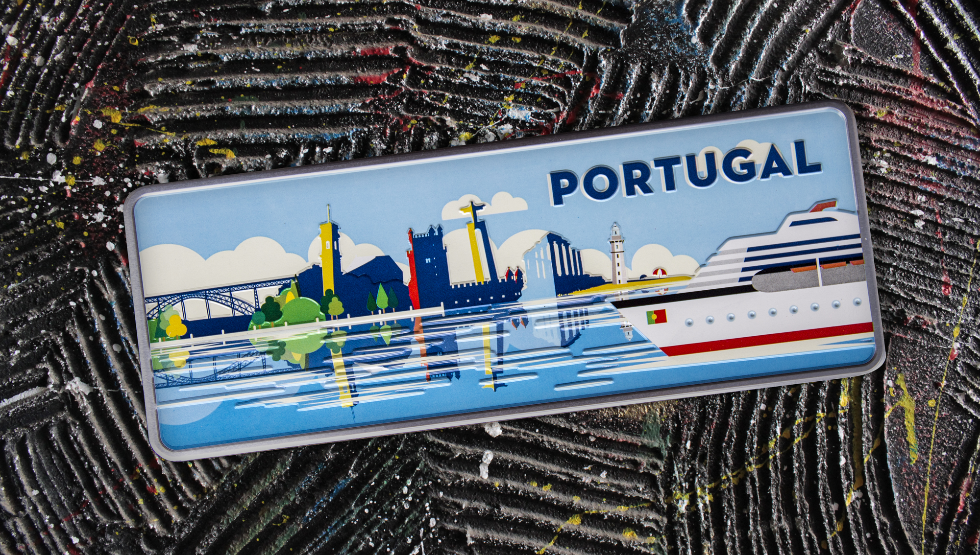 Representation of a Cruise “travel” to the main portuguese tourists attractions, with special attention to: Ponte D. Luís I in Porto, Torre da Cabra in Coimbra, Torre de Belém in Lisboa and Templo de Diana in Évora. Also represented is one of the many lighthouses that the portuguese coast has. The beauty of the plate is still exalted by the fantastic work of high and low relief, which brings life to the portuguese sea waves.