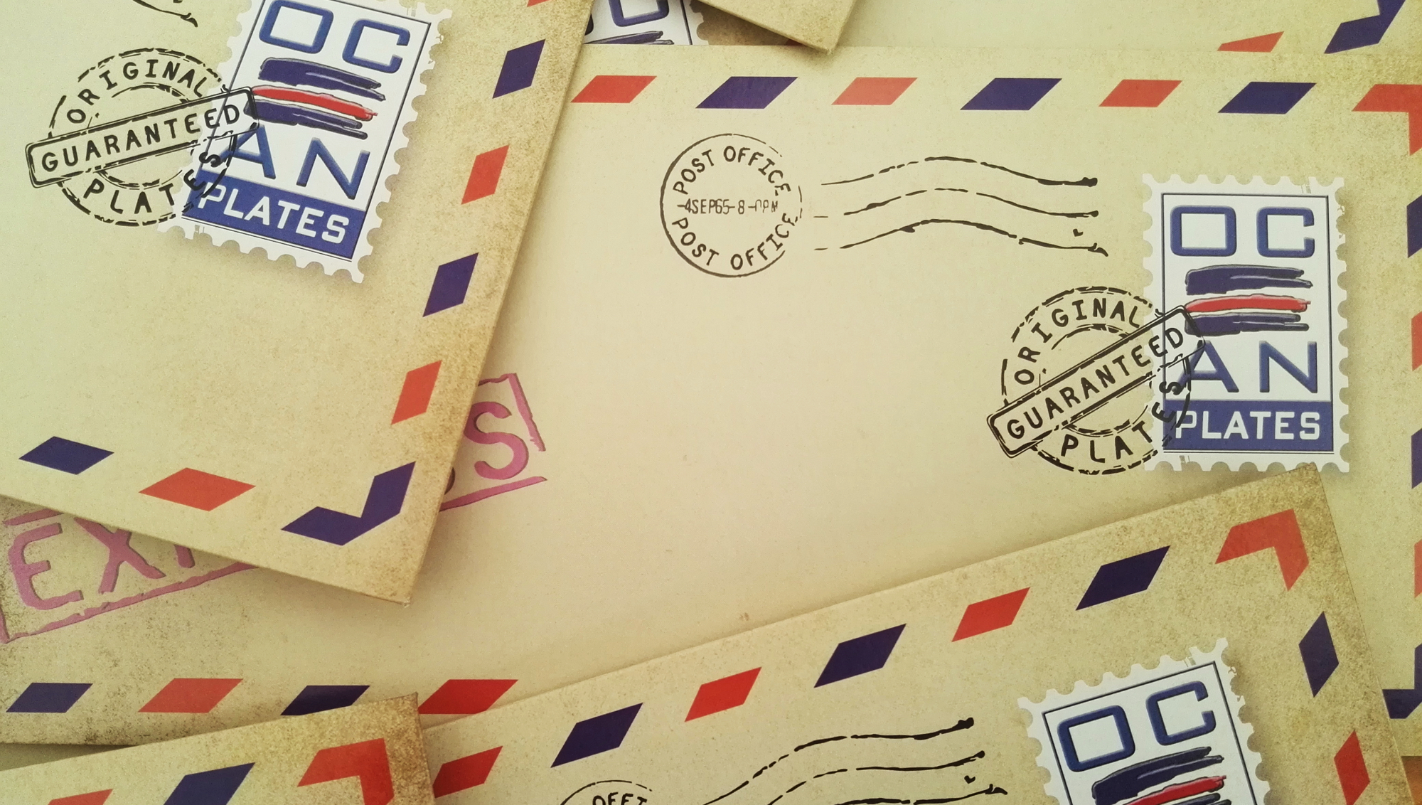 Original envelopes, specially made for Ocean Plates. They reproduce the old aerial letter.